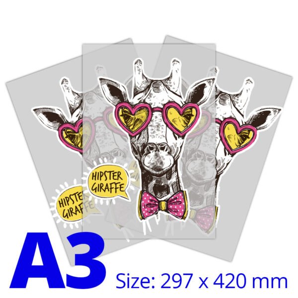 Zamów wysokiej jakości wydruk DTF na arkuszu o wymiarach A3 – 297 mm X 420 mm! Nasze wydruki Direct to Film (DTF) to gwarancja intensywnych kolorów i niezwykłej trwałości. Idealne do tworzenia unikalnych nadruków na odzieży i innych materiałach.Wytyczne dotyczące pliku:
